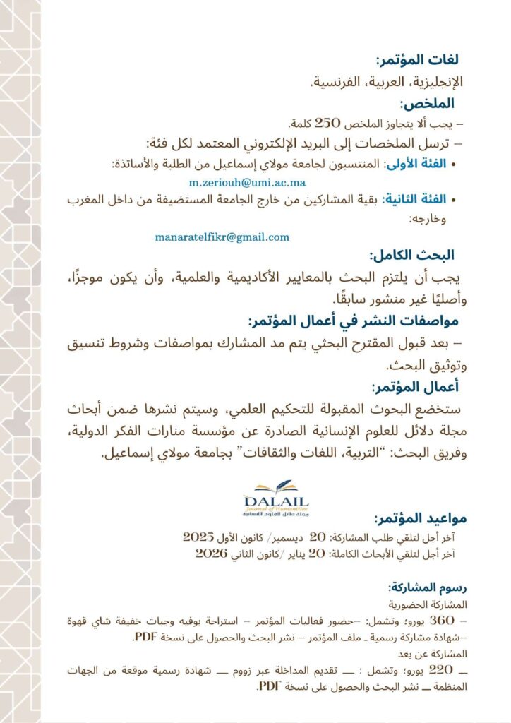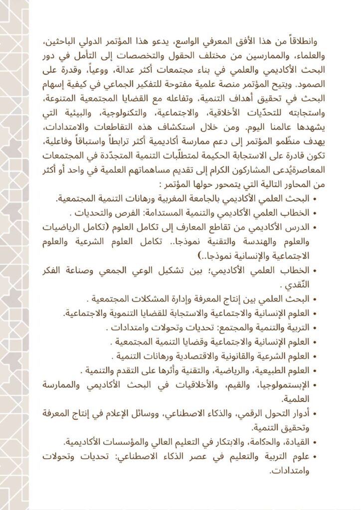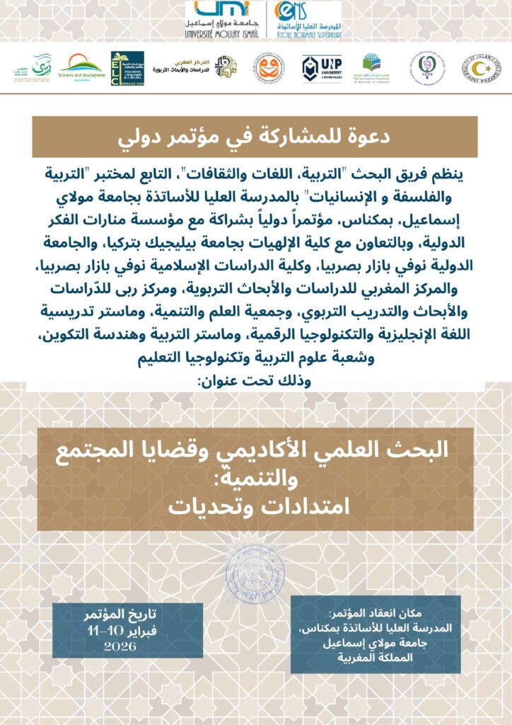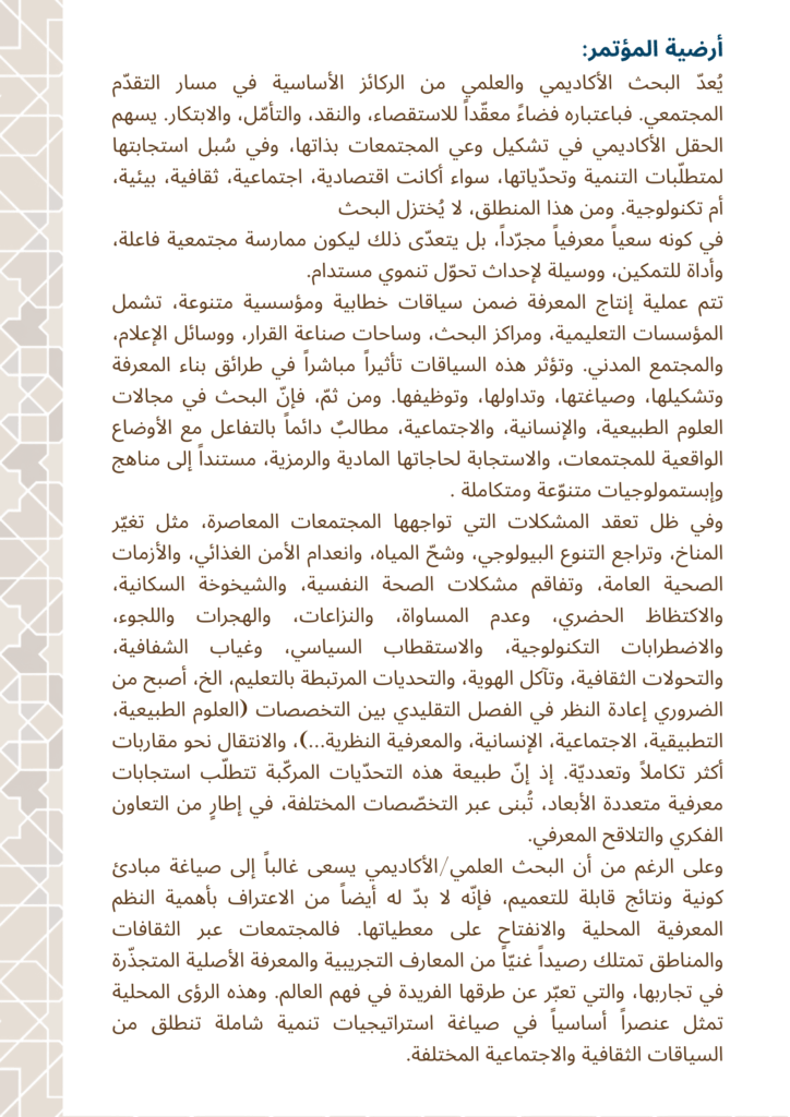 الرئيسية/أخبار المؤسسة/بروشور المؤتمر الدولي: اﻟﺒﺤﺚ اﻟﻌﻠﻤﻲ اﻷﻛﺎدﻳﻤﻲ وﻗﻀﺎﻳﺎ اﻟﻤﺠﺘﻤﻊ واﻟﺘﻨﻤﻴﺔ: اﻣﺘﺪادات وتحديات أخبار المؤسسةالأنشطة والفعالياتالندوات والمؤتمراتمؤتمرات المؤسسةبروشور المؤتمر الدولي: اﻟﺒﺤﺚ اﻟﻌﻠﻤﻲ اﻷﻛﺎدﻳﻤﻲ وﻗﻀﺎﻳﺎ اﻟﻤﺠﺘﻤﻊ واﻟﺘﻨﻤﻴﺔ: اﻣﺘﺪادات وتحديات10 ـ 11 فبراير | شباط 2026م، مدينة مكناس، المملكة المغربية هيئة تحرير الموقع أرسل بريدا إلكترونيا منذ 3 أيام0 29 أقل من دقيقة فيسبوك تويتر لينكدإن بينتيريست واتساب تيلقرام هيئة تحرير الموقع أرسل بريدا إلكترونيا منذ 3 أيام0 29 أقل من دقيقة فيسبوك تويتر لينكدإن بينتيريست واتساب تيلقرام اظهر المزيد شاركها فيسبوك تويتر لينكدإن بينتيريست واتساب تيلقرام مشاركة عبر البريد طباعة