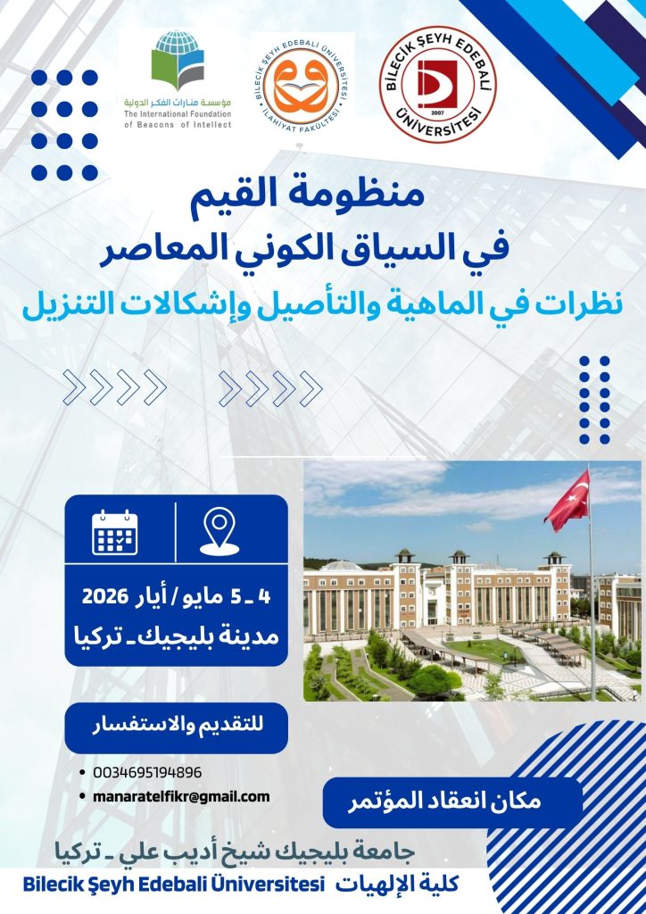 المؤتمر الدولي: مَنْظُومَةُ القِيَّمِ فِـي السِّيَّاقِ الكَوْنِيِّ المُعَاصِرِ: نَظَرَاتٌ فِي المَاهِيَّةِ وَالتَّأْصِيلِ وَإشْكَالَاتِ التَّنْزِيلِ